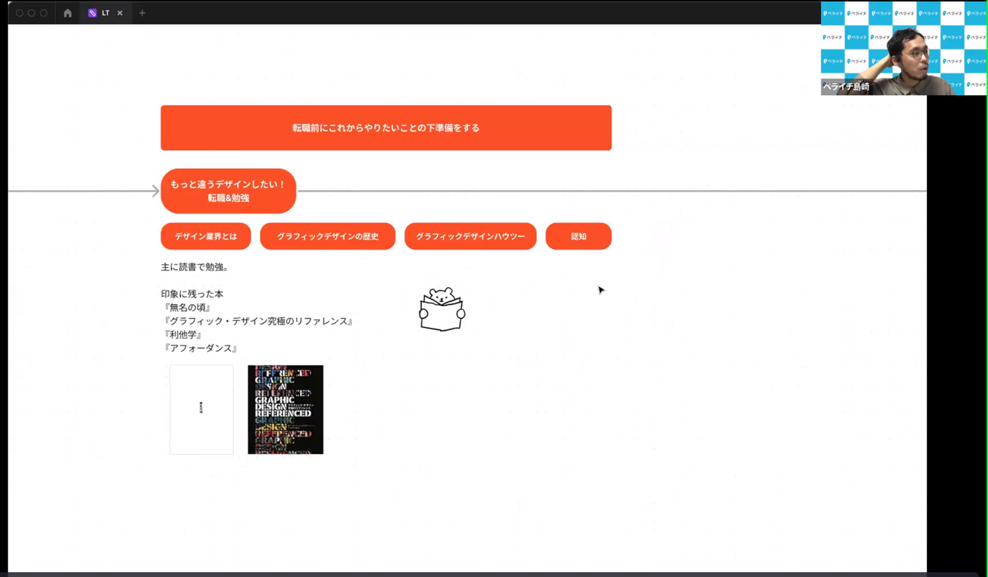 (写真↑)Figmaで作った資料を用いてご自身のキャリアと転職時の思考や下準備について