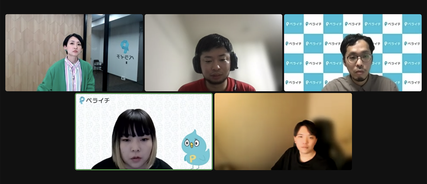 司会進行をさせていただきました私、直江はペライチ社オフィスから。他の皆様はリモートにてご参加いただき、力まずゆるりとした会をさせていただきました。
