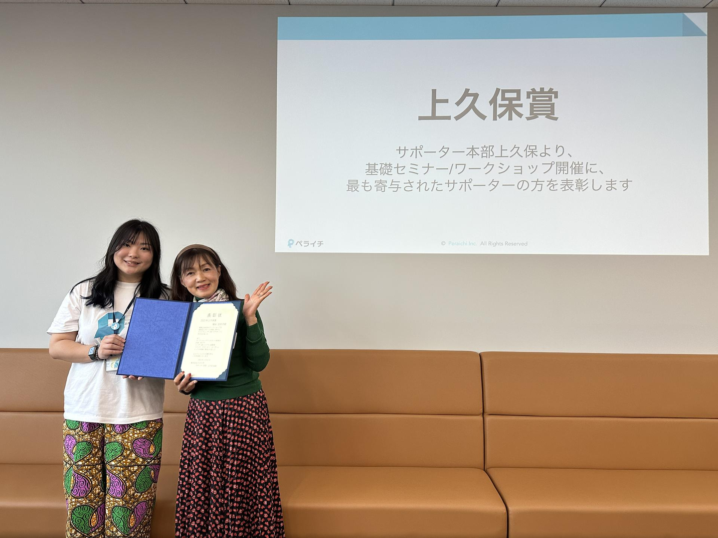 (写真↑)各賞を受賞したサポーターさんとペライチメンバーと記念撮影の様子