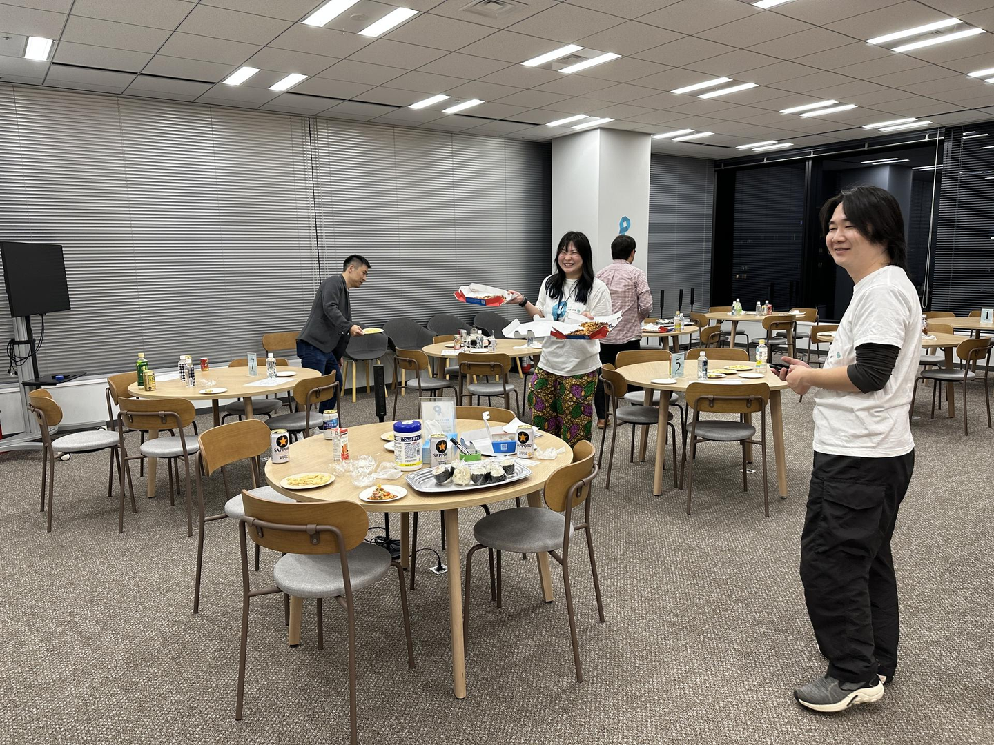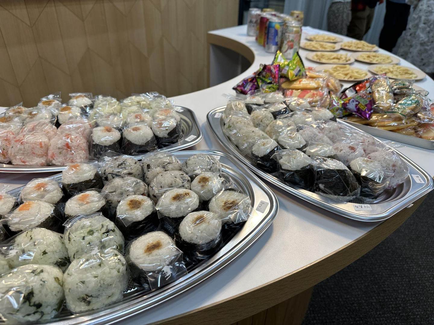 1時間半という短い懇親会だったので、つまみやすい軽食を用意しました。意外と好評だったのがこちらのおにぎり!食べやすかった・おいしかったと感想をいただきました。