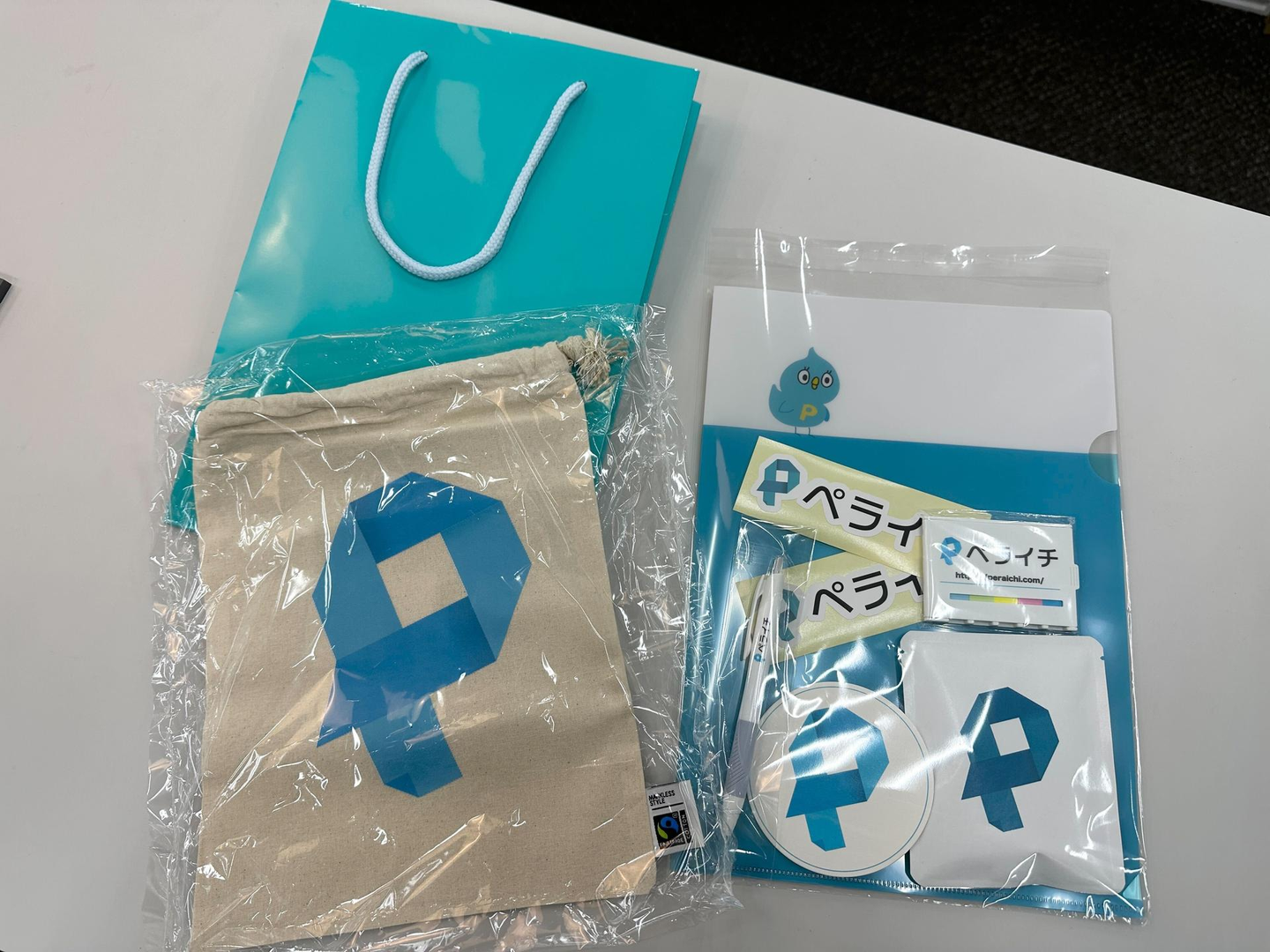 せっかくオフィスまで来ていただいたので、参加者にはペライチオリジナルグッズをプレゼントさせていただきました。ペライチ社員にも渡していない超レアなグッズたち!ゲットした皆様、ぜひ使ってくださいね!