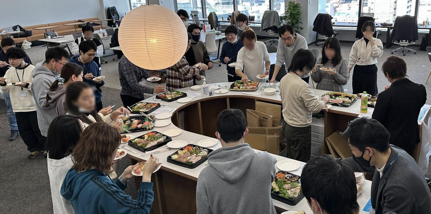 雇用形態、役職を問わず、ペライチ全メンバーが参加できるオフィスでのランチ会で、対面でざっくばらんに交流することで、関係性を築きやすくすることが目的です。