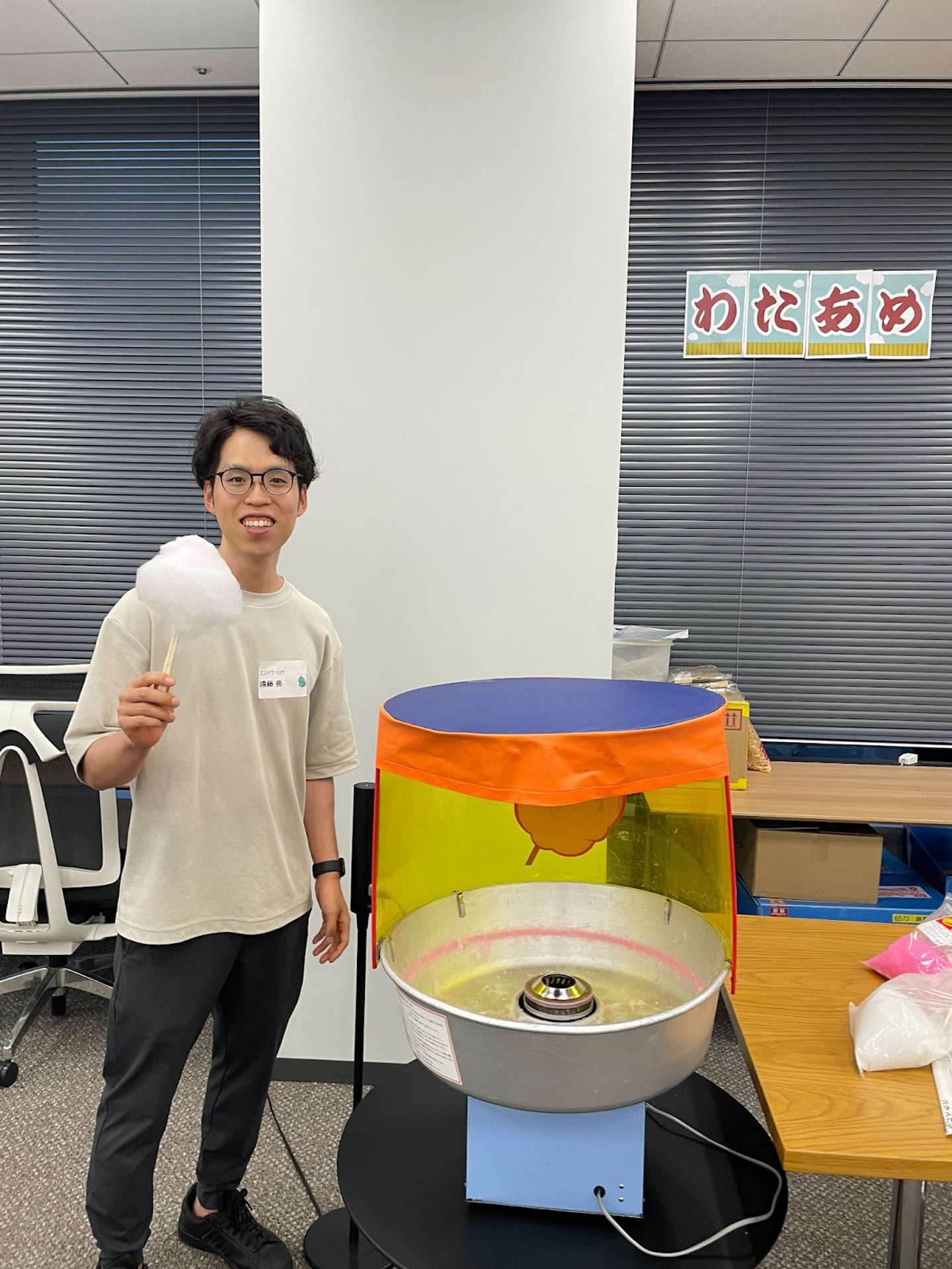 (写真はペライチメンバーの遠藤さん。まん丸わたあめを作ってくれました!)
