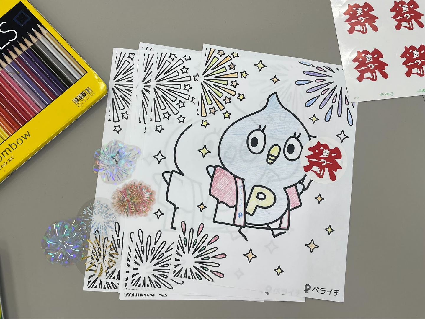 ぬりえの絵は、夏まつり特別仕様のピーちゃん♪