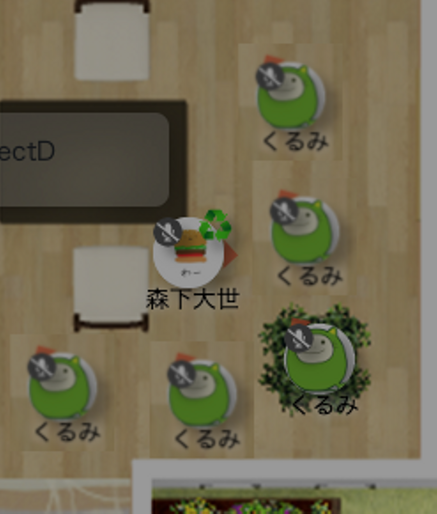 oViceはかなり柔軟にレイアウトを設定することができ、パーソンリンクではプロジェクトごとの机、作業スペース、MTGエリア、MTGルーム(鍵付き)、ペアプロルーム、歓談&休憩エリアなどを配置しています。こうして用途に応じたエリアを作ることで、もくもくと作業をしたいのか、話しかけてもいいのかがわかりやすくなります。
