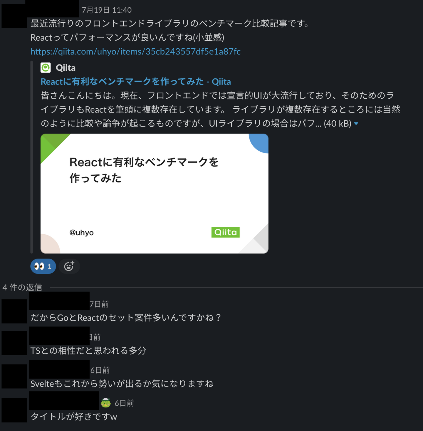 弊社では、コミュニケーションツールでSlackを活用して、そんな「話題のネタ」となる情報をシェアしていく「output_share」というチャンネルを開設して技術の雑談が行われています。