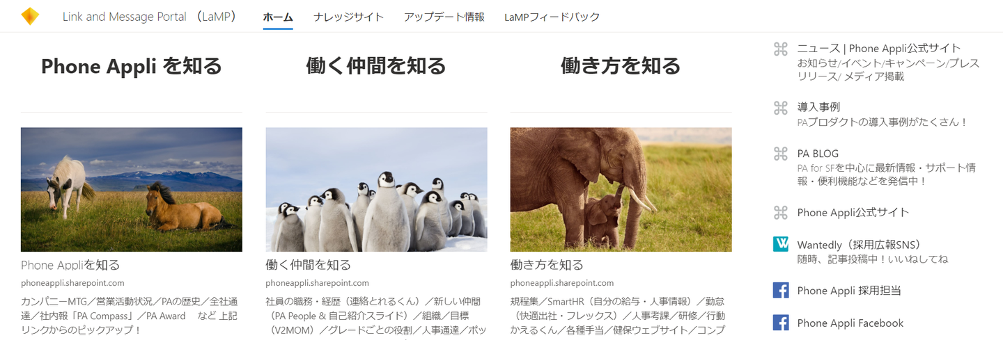 “Link and Message Portal”、通称「LaMP」と呼ばれているナレッジポータルがあります。