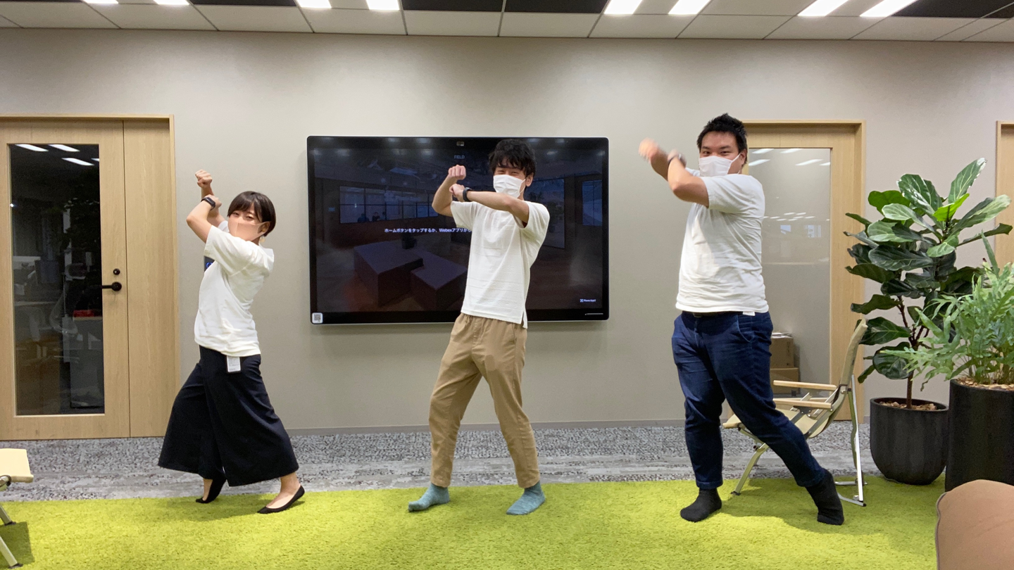 (写真は本日、約3か月ぶりに出社したテンションで同期入社のメンバーと撮りました。)