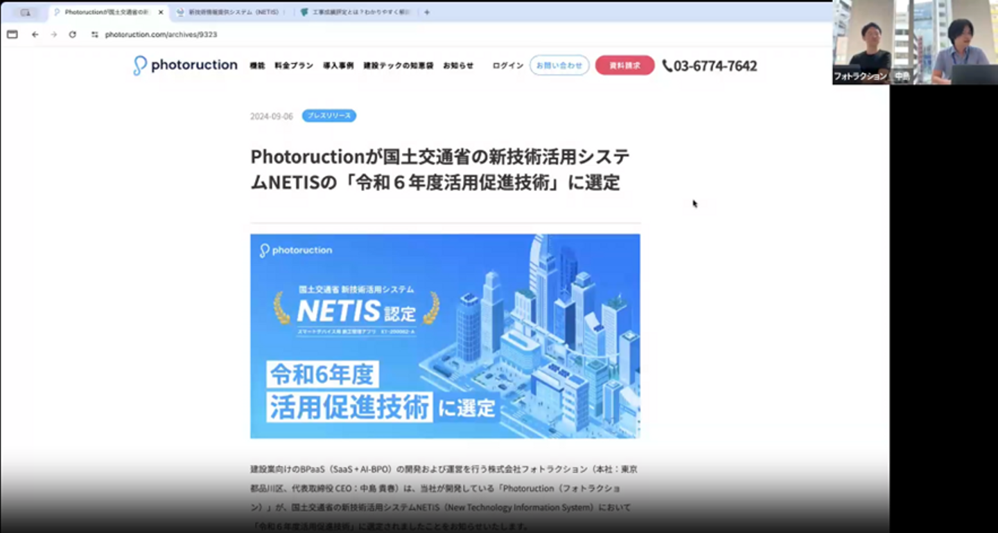 Photoructionが国土交通省の新技術活用システムNETISの「令和6年度活用促進技術」に選定されました。そこで今回はNETISとは何か?といったところから、どういった良いことがあるのかというのを説明しています。