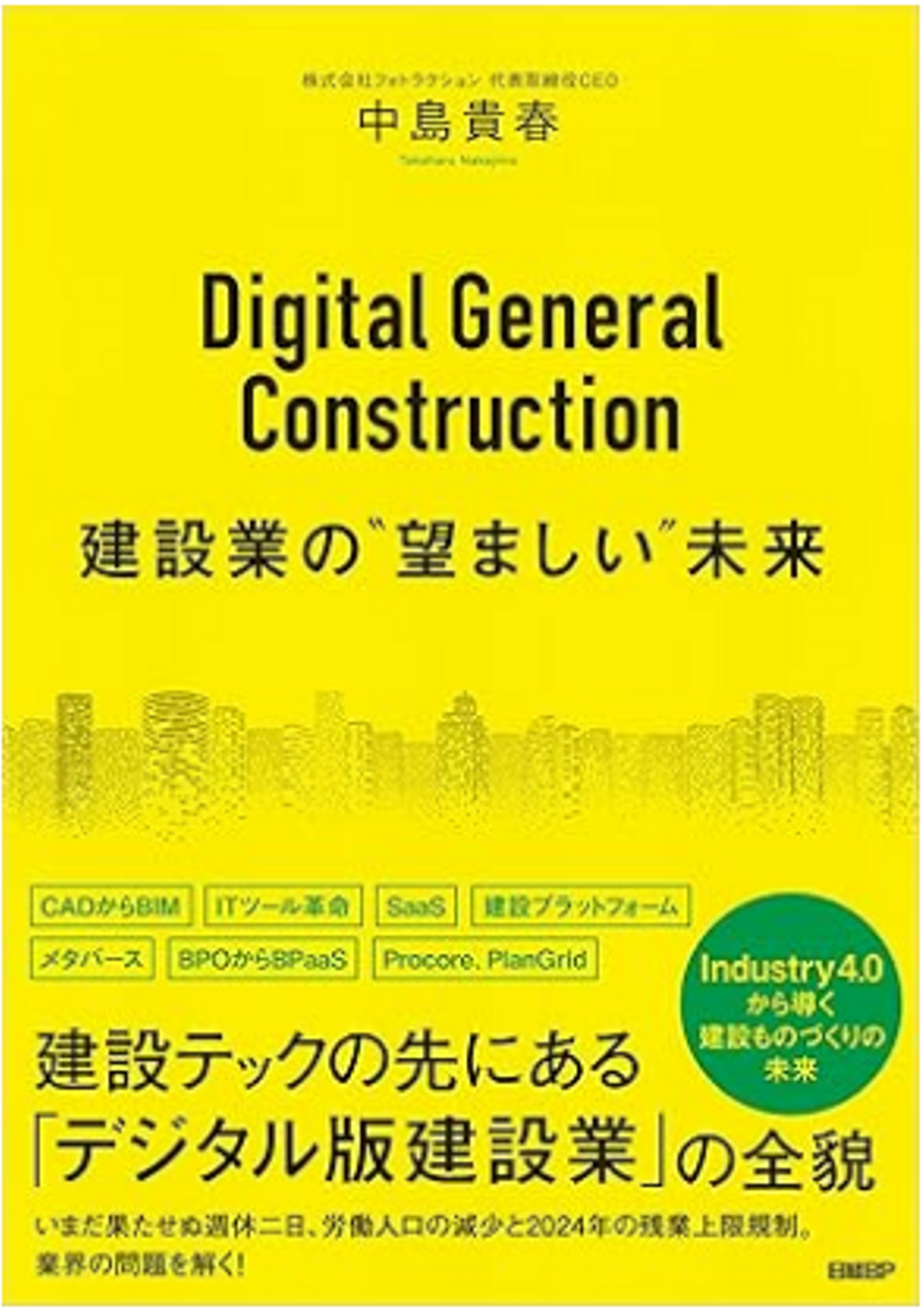 フォトラクション代表中島の著書です。建設テックの今の状況を網羅的に知ることができるのに加え、当社の今後の成長戦略のコンセプトである「デジタルゼネコン」の考え方について詳細を記載しています。
