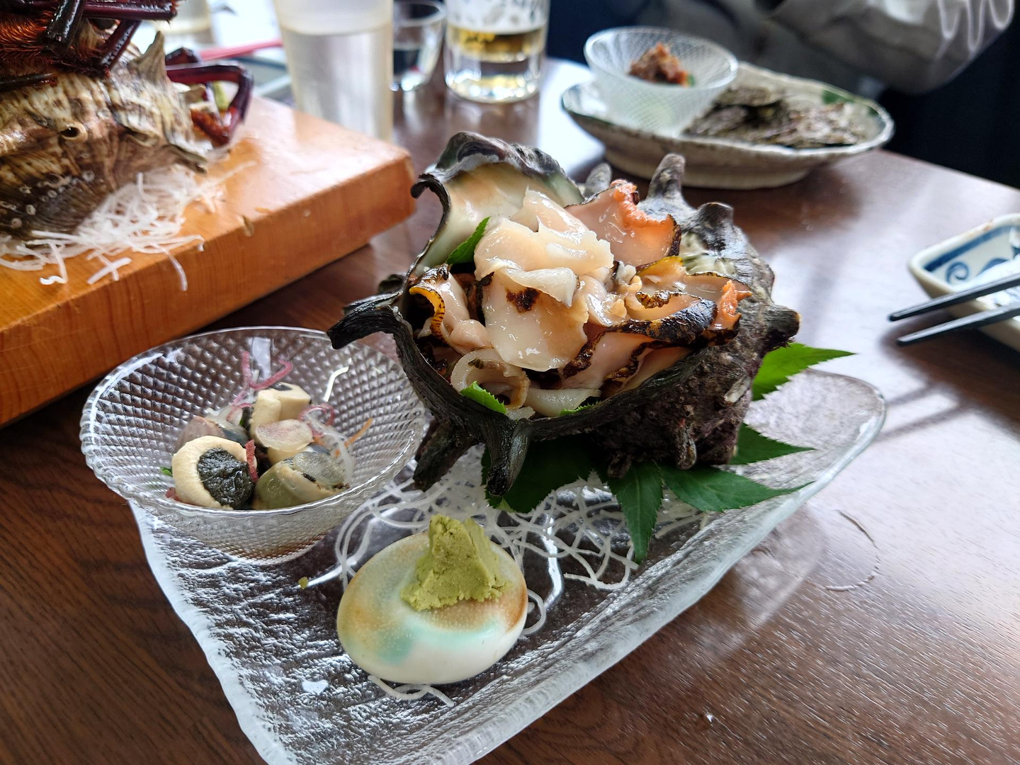 伊勢海老や鮑、サザエなど海鮮料理を堪能しました。