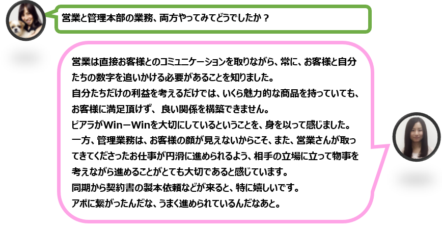 実は彼女、入社3ヶ月の間に、営業とバックオフィスの両方を経験している異例の経歴の持ち主なんです!