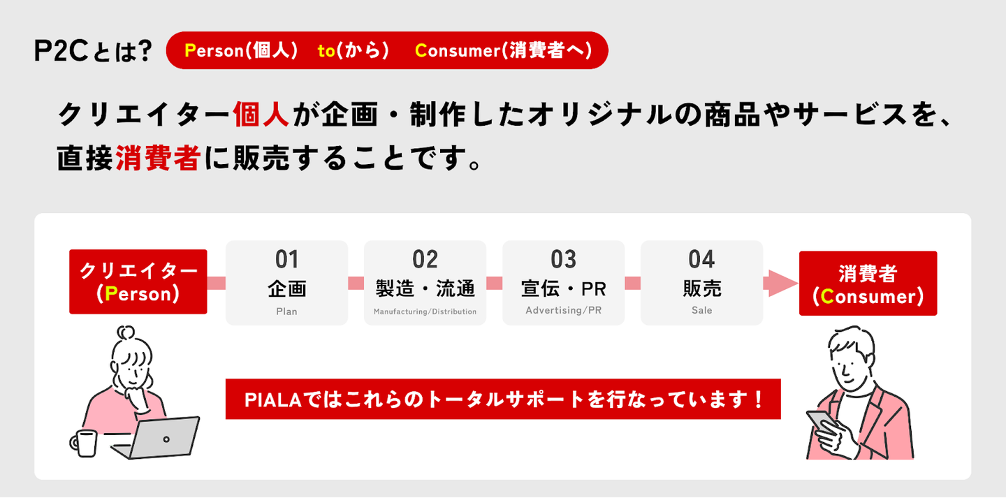※P2Cとは、個人が企画・制作した商品やサービスを、直接消費者に販売すること。