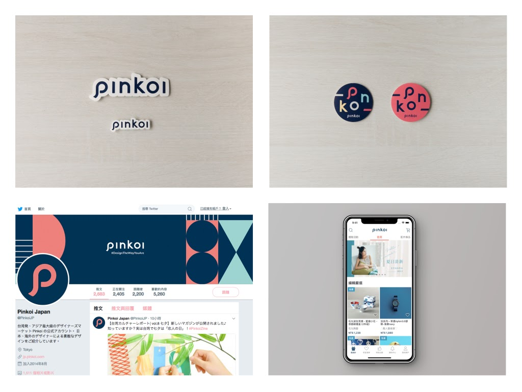 リニューアル前のPinkoiのピンクのロゴは、女性向け、若者向けのイメージが強かったため、新しいロゴは落ち着いたネイビーを使用。ブランドカラーがネイビーになったPinkoiに、より幅広いジャンルのデザインブランドが気軽に参加できるようにという願いを込めています。ネイビーの他に、サーモンピンクなどのセカンダリーカラーを入れ、落ち着きがありながらも個々のアイデンティティーを尊重する姿勢を表しています。