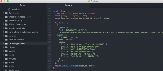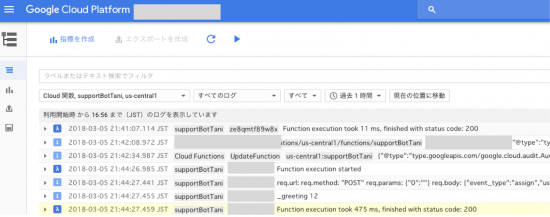 KARTEはGCP(Google Cloud Platform)を利用しています。その中のCloud Functionsを利用して環境を作りました。(ここの設定はエンジニアさんが、たに用のチャットボットテスト環境を作ってくれました。)反映の際は、ログをみながら確認。