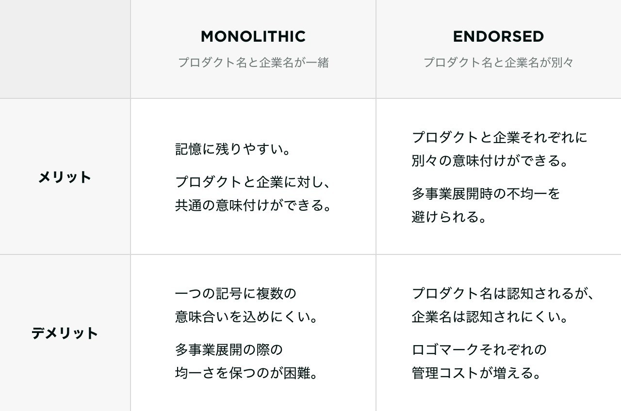 - 多事業展開する際、一つだけ企業名の事業が存在することになる。均一さを保つにはどちらかを変える必要が出てくる