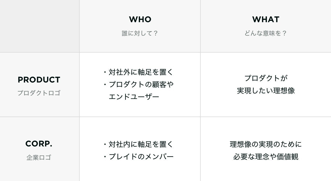 上記を受けて、プレイドにおける企業ロゴの役割は、「プロダクトを提供していく内部のメンバー」に対して、「目指す理想像を実現するために自分たちが重要視する理念や価値観、行動を想起してもらう」ことと決め、今回の刷新に至りました。
