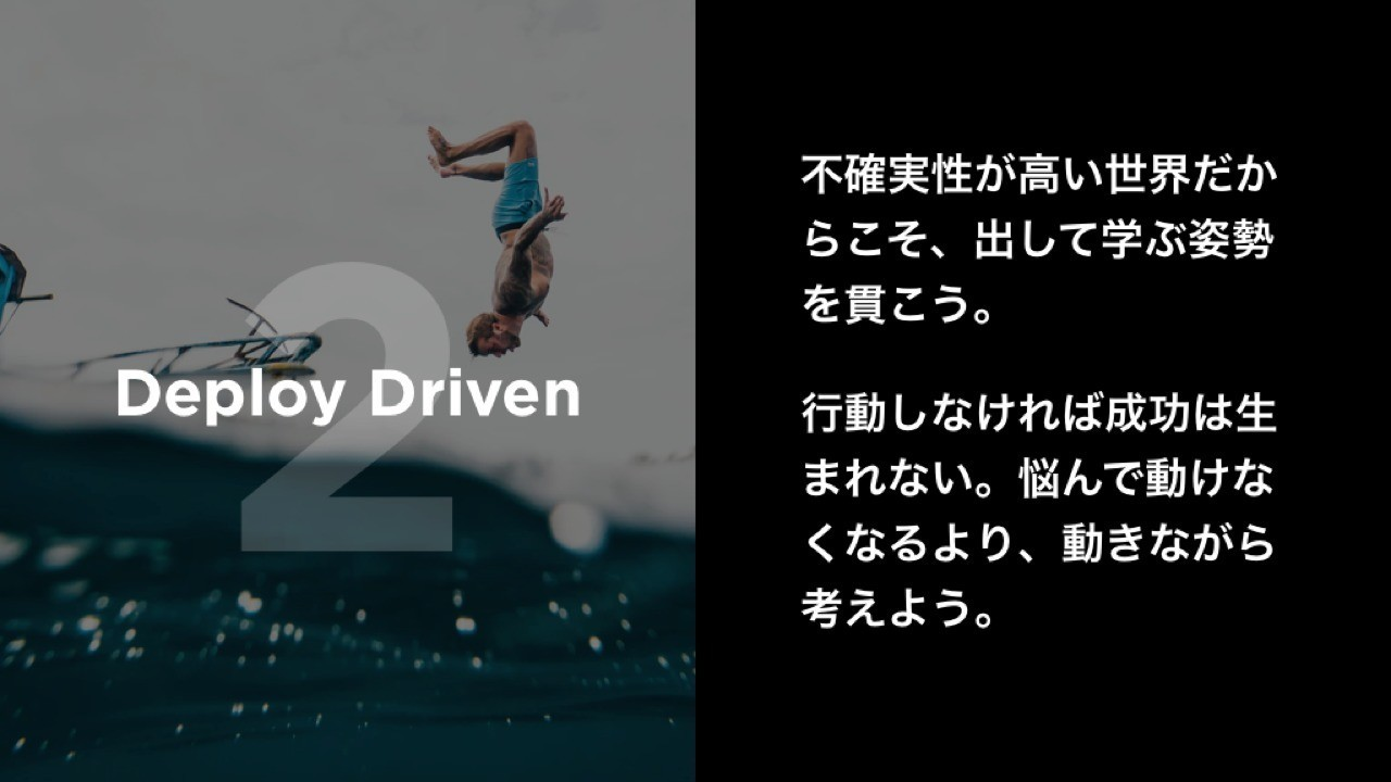 2つ目は「Deploy Driven」。エンジニアリングで馴染みがあるDeployという言葉から着想を得たものです。