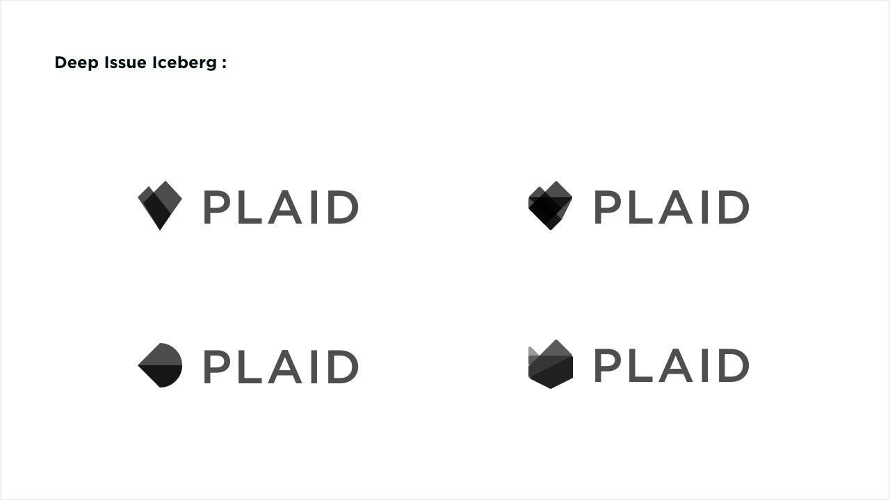 「3つの矩形」の「重なり合い」により、「赤く染まった氷山」が形成される様を通じて、「ビジネス×デザイン×エンジニアリングの3領域に特化するメンバーが、BIの3つの行動様式を伴ってコラボレーションしながら、深層課題に向かって狂気的に前進する組織」という意味に結びつけることを目指しています。