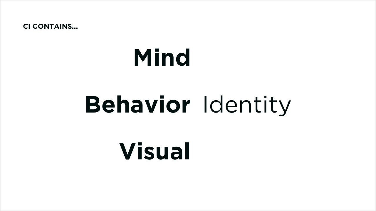 CIを構成する要素として「MI(Mind Identity:理念、思想)」「BI(Behavior Identity:価値観や行動)」「VI(Visual Identity:視覚表現)」の3つがあります。
