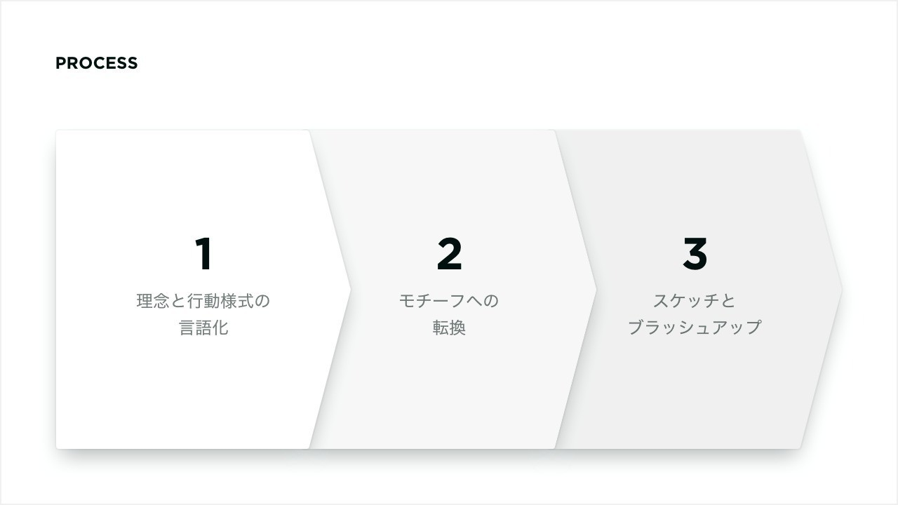 ロゴマークに至っては、MIとBIを想起する手段としてVIがあるという関係構造であり、前者2つの意味をロゴマークにつなぐことができなければ、ただの飾りになってしまいます。そのため、CEO倉橋、CTO柴山との対話を通じて、改めて企業理念と行動様式の言語化からはじめました。