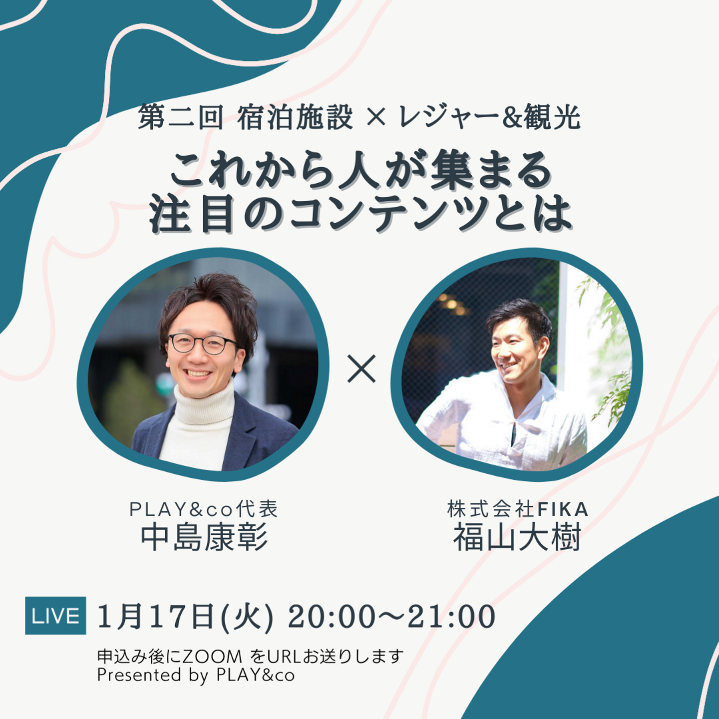PLAY&co代表 中島庸彰×株式会社FIKA 福山大樹 第二回 宿泊施設 × レジャー&観光