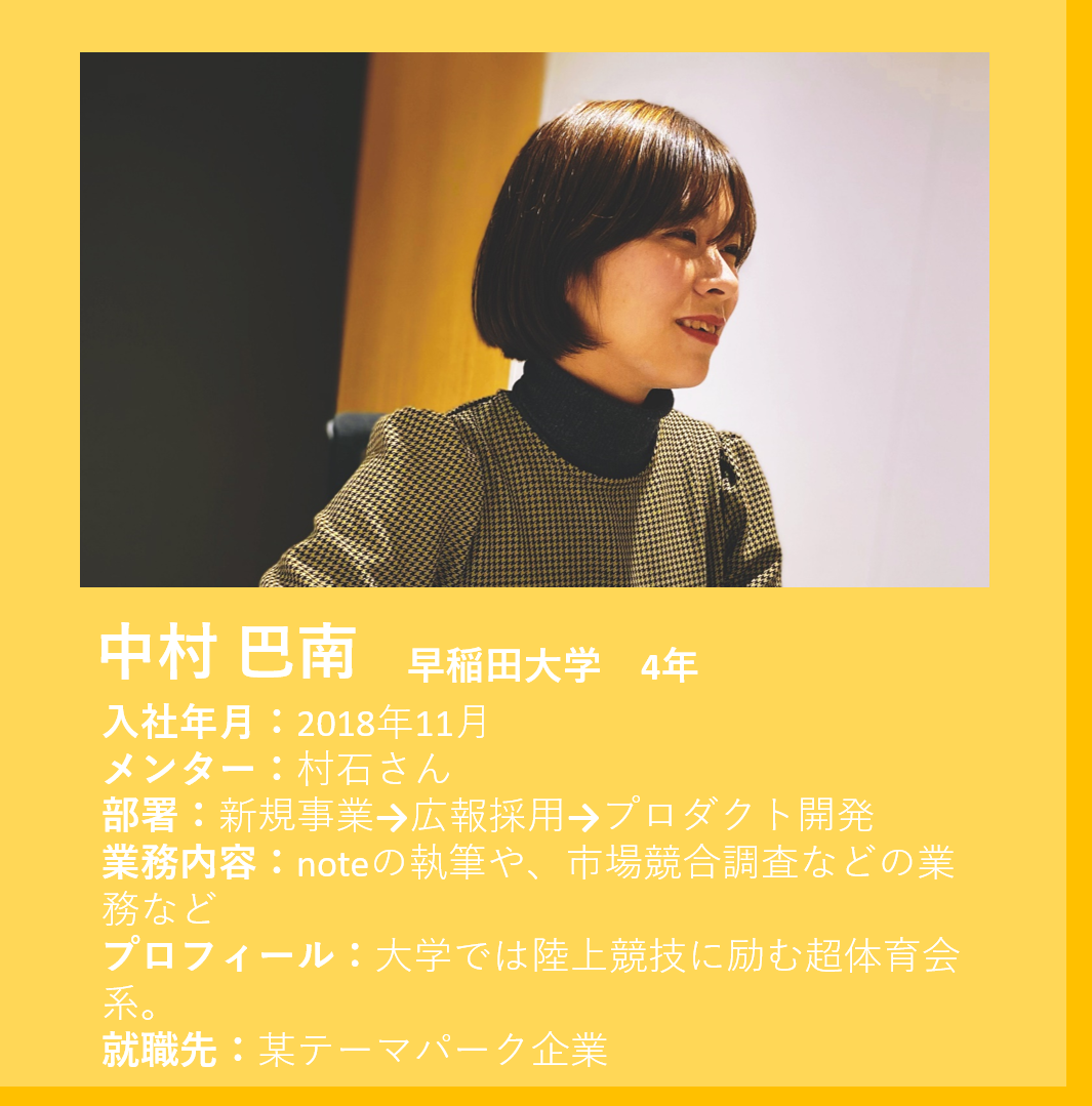中村 私も不安だから行動した学生の一人です。私はずっと陸上競技をしてきて、大学でも体育会で競技に打ち込んできました。大学の競技生活は怪我続きで走れない期間も長く、そんな時に、「自分から陸上がなくなったら、何ができるのだろう」と不安に思ったのが、長期インターンをはじめたきっかけです。部活ばかりしてきて、ビジネススキルや社会人スキルには全く自信はなく、「将来への理想はあるけど、このままでは自分のやりたいことなんて選べないかもしれない。でも、これからもできるだけ自分のやりたいことに熱量をかけたい、このままではいけない…。」と思い立ったころにはインターン合同面接を受けていました。「将来はテーマパークでマーケティングがしたい!」という志望もあり、エンタメ系の知識も得ることができそうなplaygroundに入社を決めました。