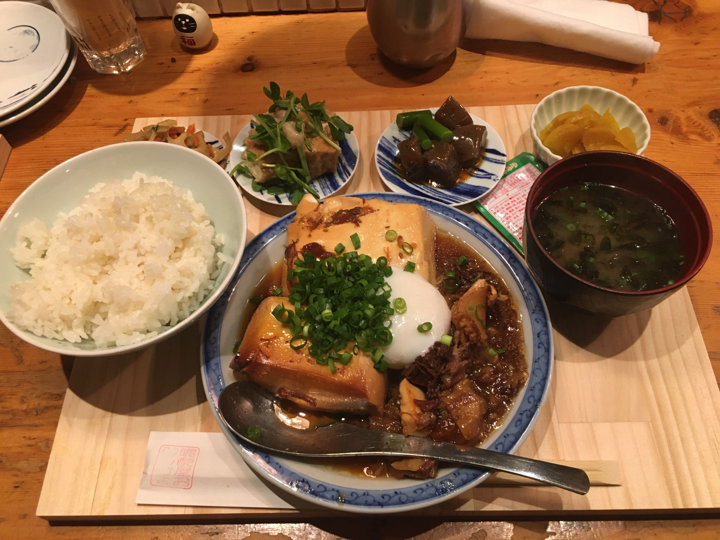 この日は牛すじ煮込みと豆腐の定食(900円)を頼みました。