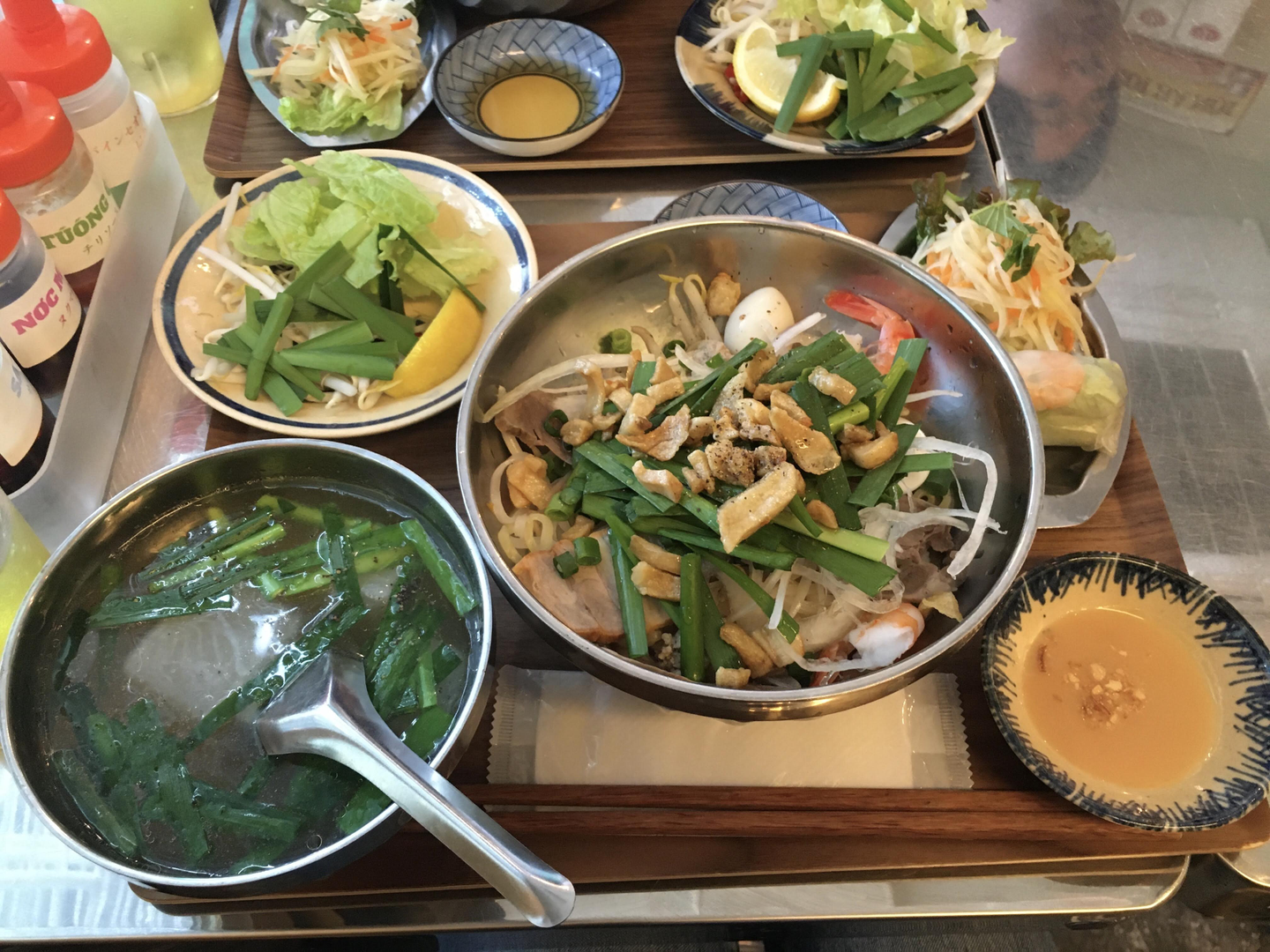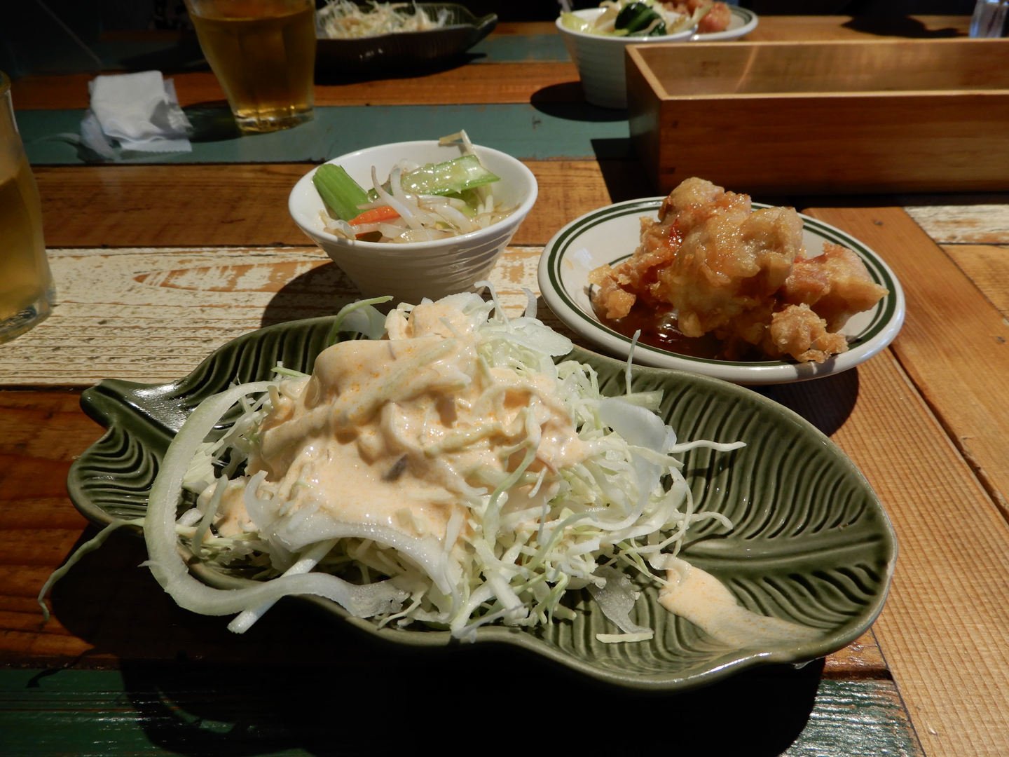 マイペンライ(気にしない)って言葉がタイの国民性を表しているということを、旅行を共にしたタイ在住歴5年の親友が教えてくれたのですが、その国民性を体現するかのようにサラダ、油淋鶏、スープ、ドリンクがお代わり自由という太っ腹なお店です(笑) コップンカー。