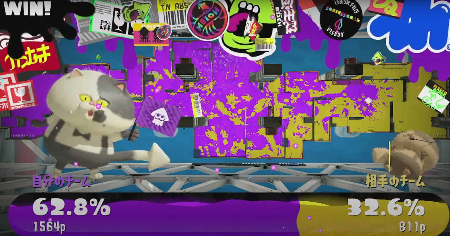 この時点で、ナワバリバトルとガチアサリで2勝したQTnetの勝利が確定。