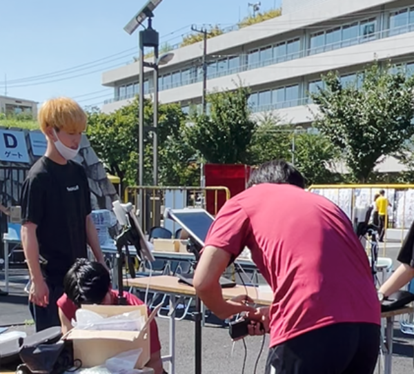 ▲イベントで機材の設置方法をレクチャーする稲田さん(左)