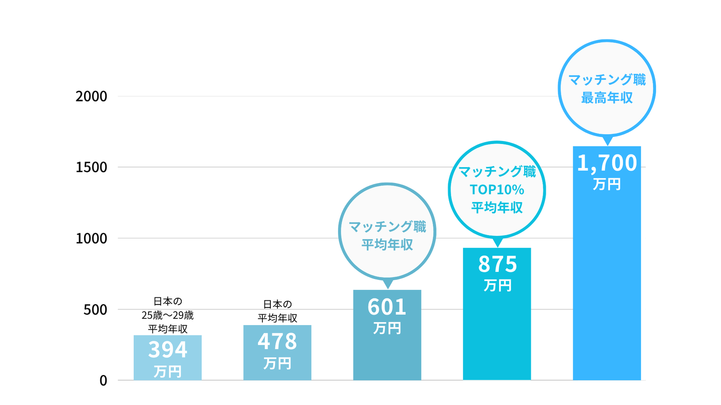 マッチング職メンバーの業績トップ10%の平均年収は875万円で、最高年収は1,700万円です。