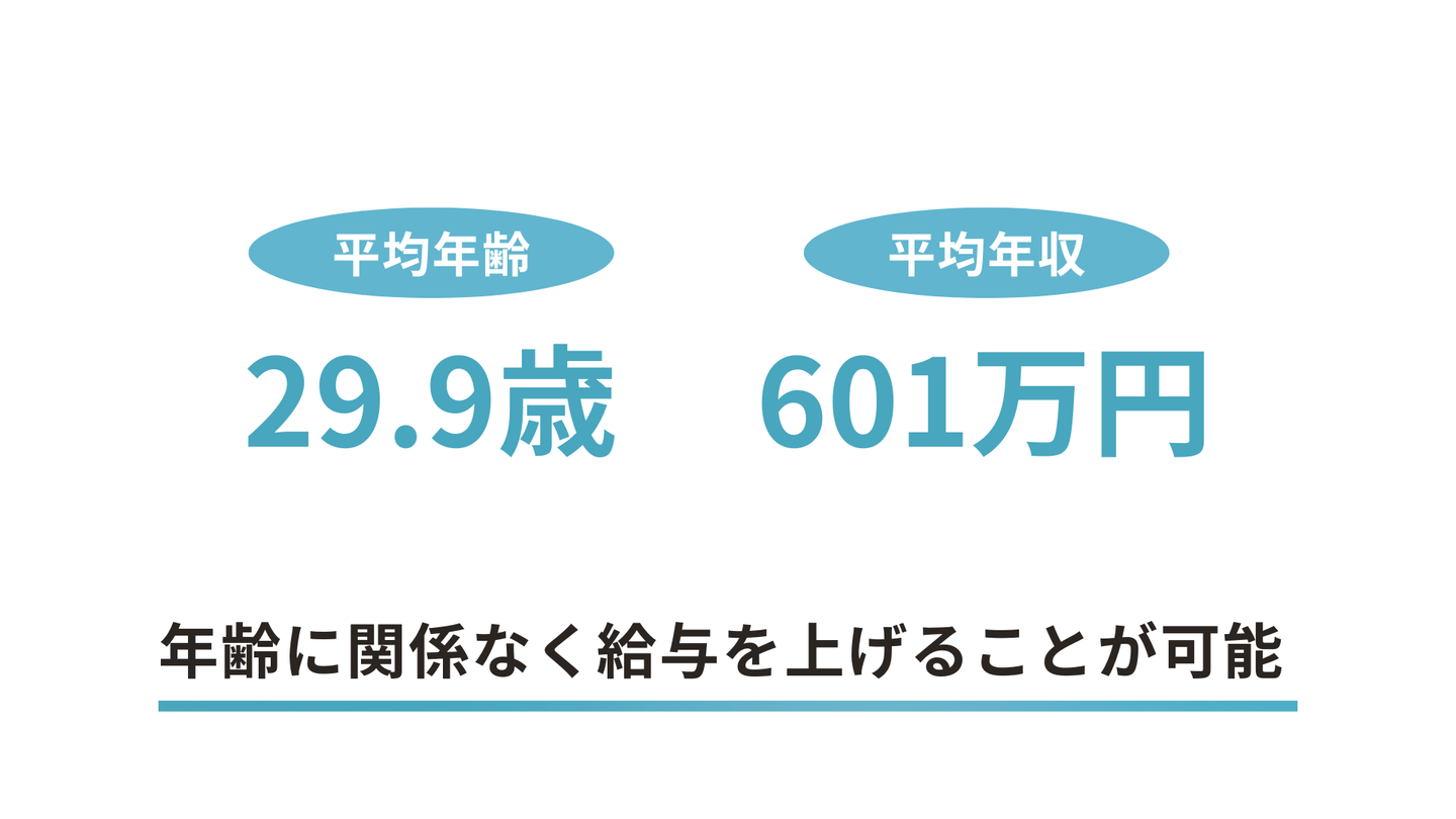 メンバー・チームリーダーの平均年齢29.9歳、平均年収601万円