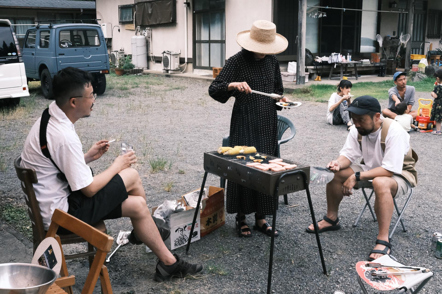 ひと汗かいた後はBBQの時間。各々が買い出しをしてきた食材や、ブルーベリーの傍らで育てられているお野菜を頂いて、夏空の下でお腹いっぱいに味わいます。