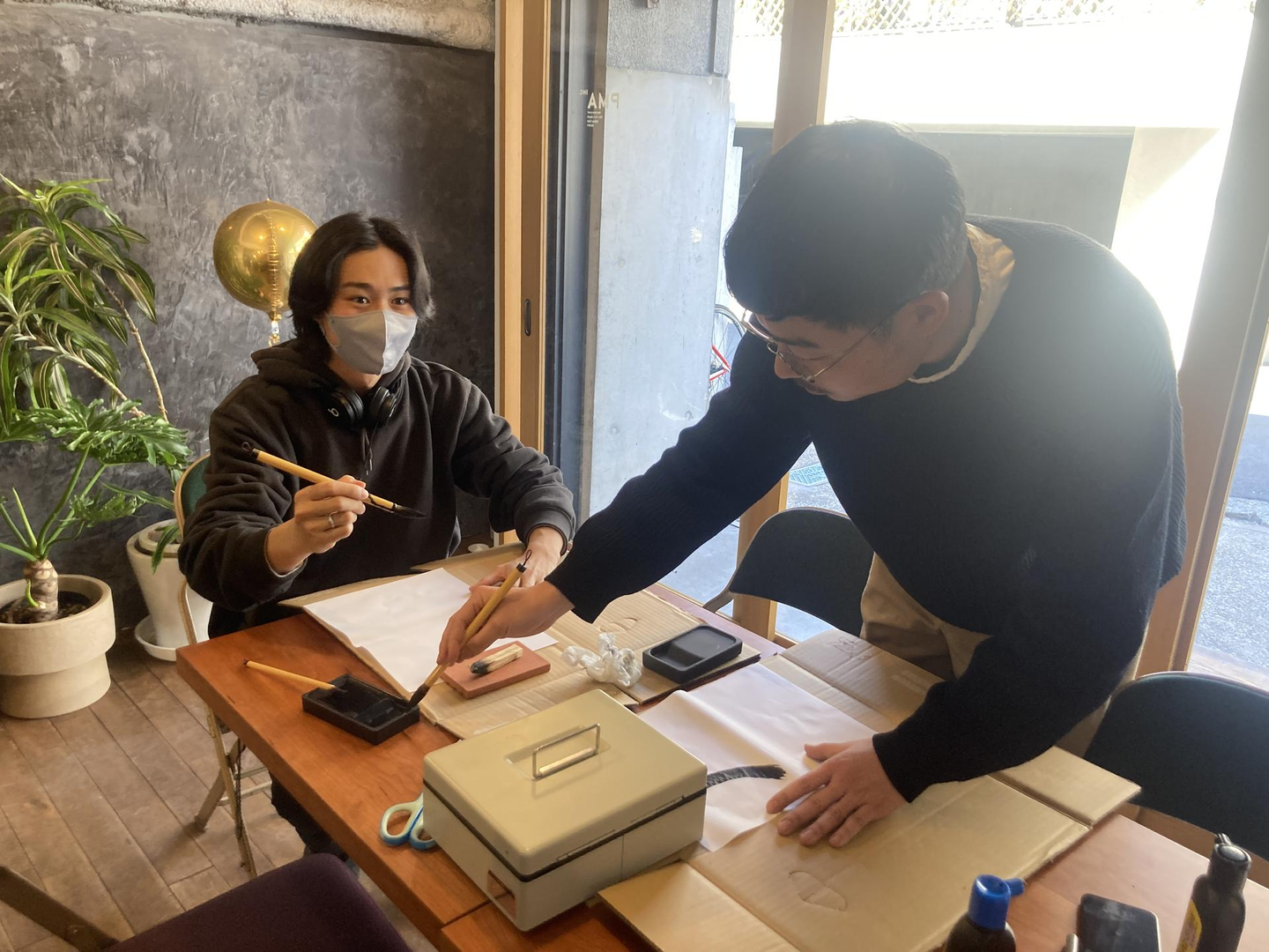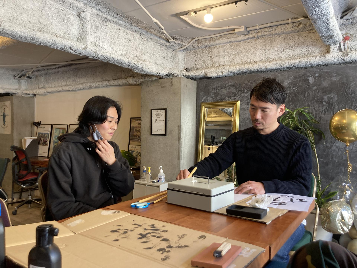 クライアントとの連絡やワークの合間を縫って、思い思いに今年の思いを半紙にしたためます。