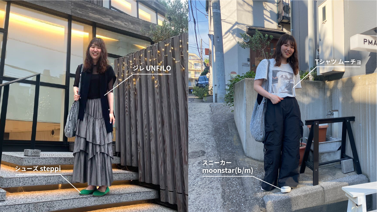 3人目は、2024年新卒のあつこ。いろんなテイストのコーディネートが好きで、毎日人が変わったよう。