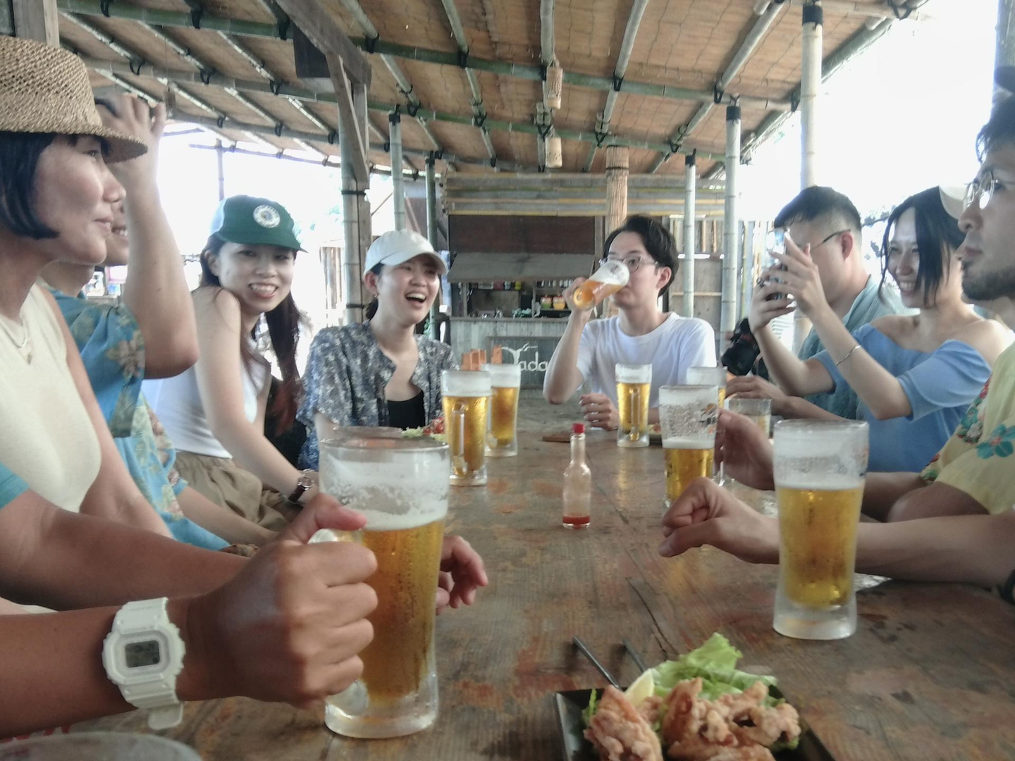 海の家で真っ昼間に飲むビールは格別です。平日です。社長ありがとうございます!