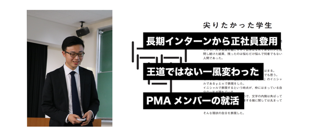 「人を大切にしないで、何を大切にするんだ。」これが、株式会社PMAのモットー。何か、とっても大切なことを言っている気がするけど、どんな想いが込められているのか。入社時にPMAメンバーにインタビューを実施しました。色々な想いを持って入社したメンバーがPMAでの経験を経てどのように成長・変化したのかを紐解くPMA Member Interview Vol.2です!今回は入社3年目の田中さんのインタビューをお届けします。ー初めての記事をお読みになる方へ向けて、プロフィールをご紹介します。神奈川県出身。学生時代にはピアノとバスケとドラムに熱中。体や手を動かして表現することや新しい世界を知ること、...