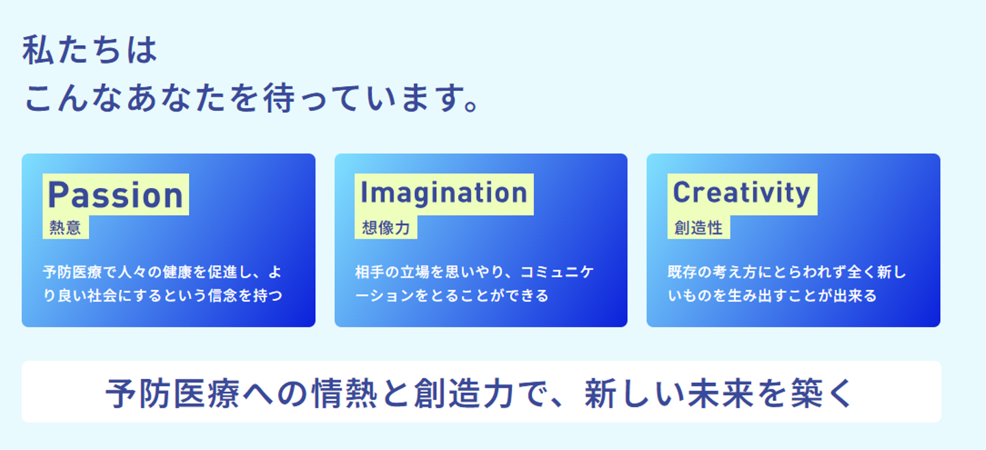 予防医療への情熱と想像力で、一緒に未来を築いていただける強い意志を持った方々を心よりお待ちしております!