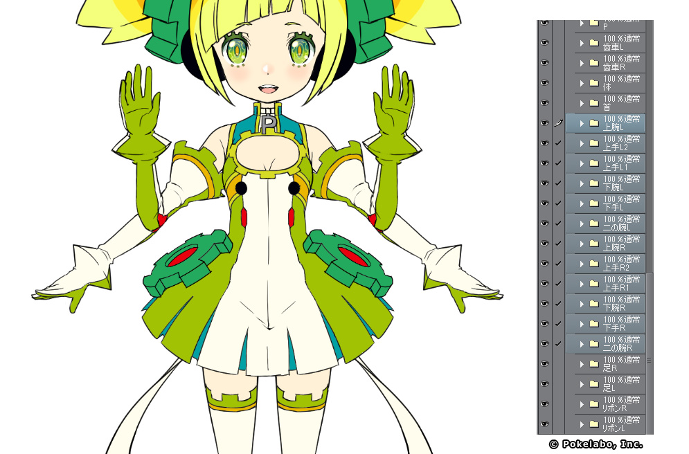 公式サイトのメイキング動画を見て予習しつつ、基本的に体や頭などはSpineと同じように分けていきます。