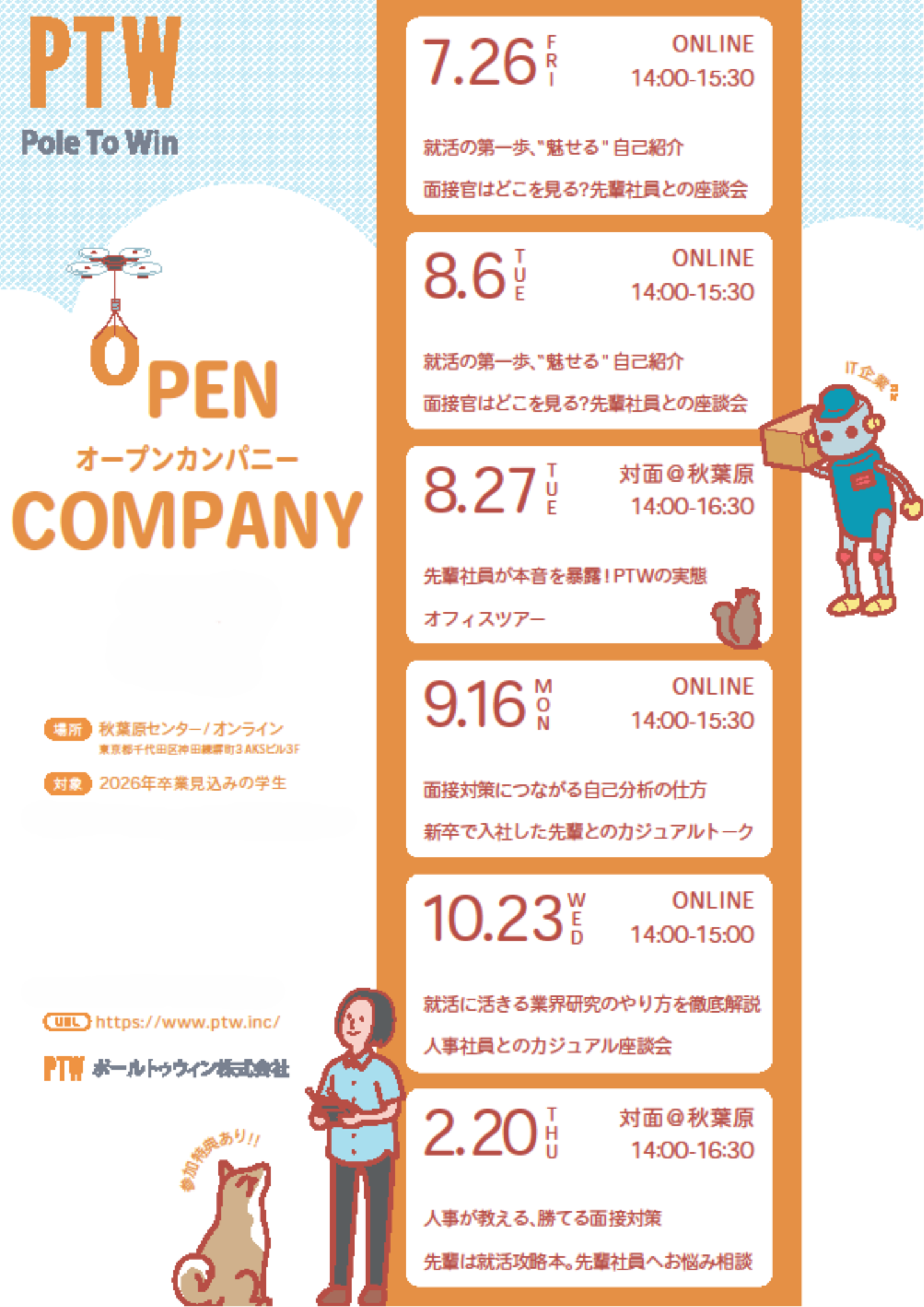 ポールトゥウィン株式会社は、2026年3月卒業見込みの学生向けオープンカンパニーを開催いたします。