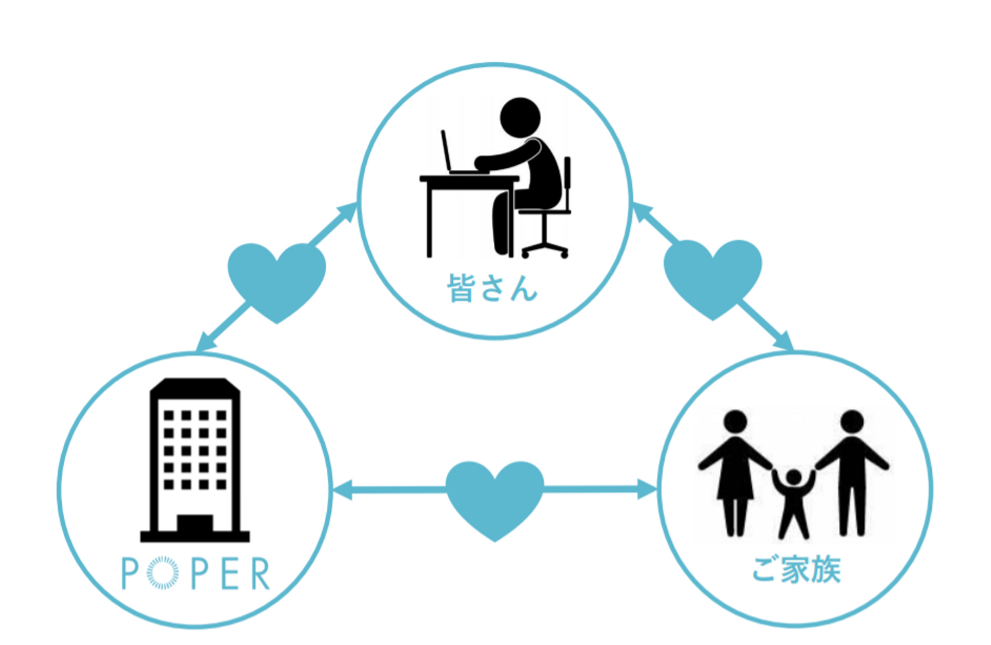 POPERの福利厚生により、会社、働く皆さん、ご家族の関係性が深まり、お互いを尊重しあえることを目指しております。