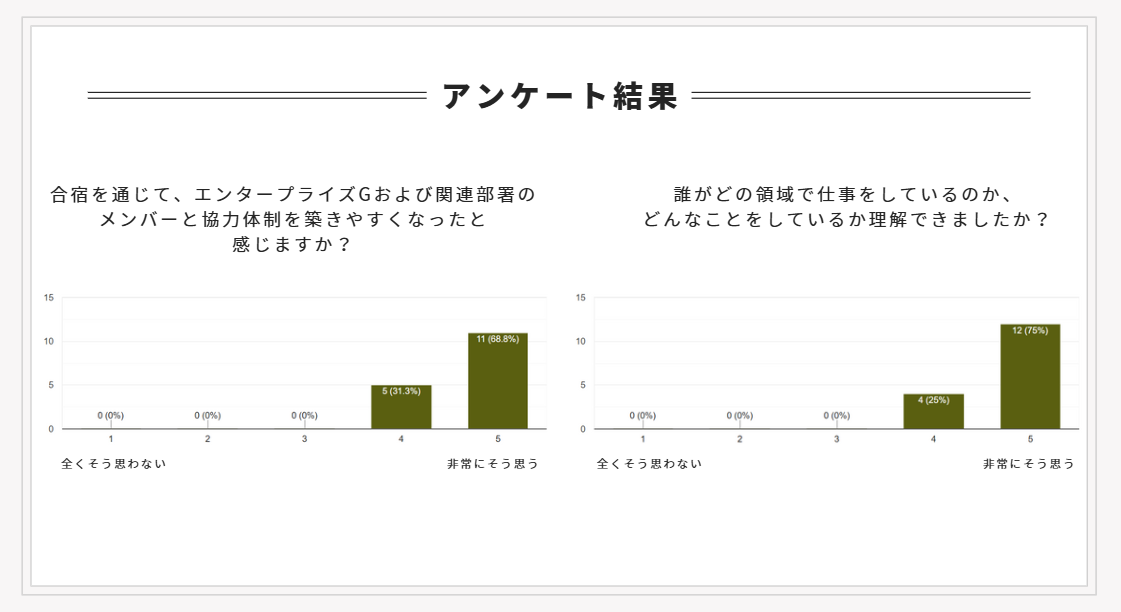・チームで働く上で何が重要か、何を成し遂げたいかを改めて考えるきっかけになりました。