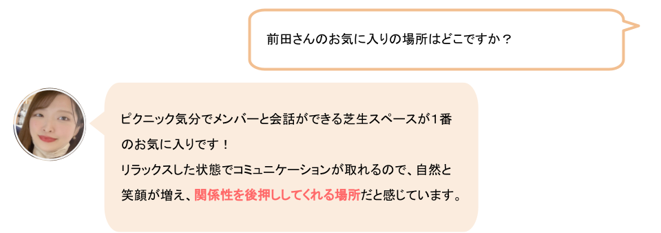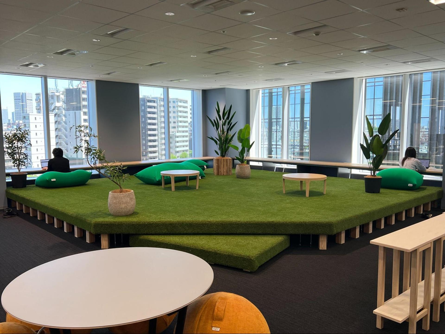 こちらの芝生スペースは見晴らし抜群!Yogiboに座ってリラックスしながら作業したり、ゆったりとご飯を食べることができます!
