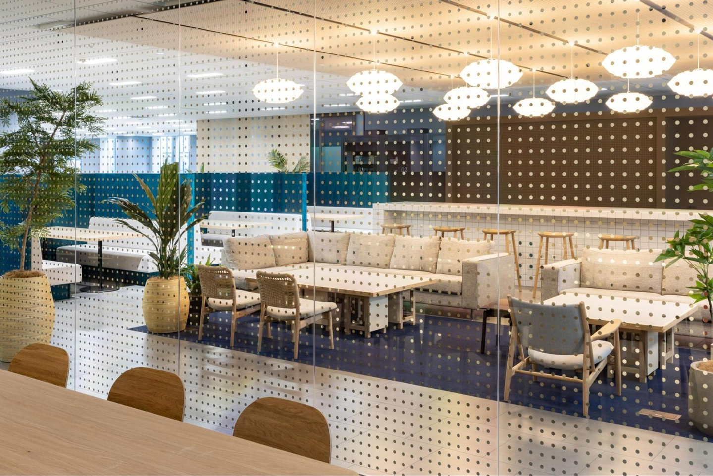 こちらはソファーやカウンターがあるカフェエリアです!仕事で使用することもOKですが、お昼ご飯を食べたり、休憩する時にも多く利用されています。終業後はこちらのエリアで、飲食を伴う部門間交流会等も開催されています。
