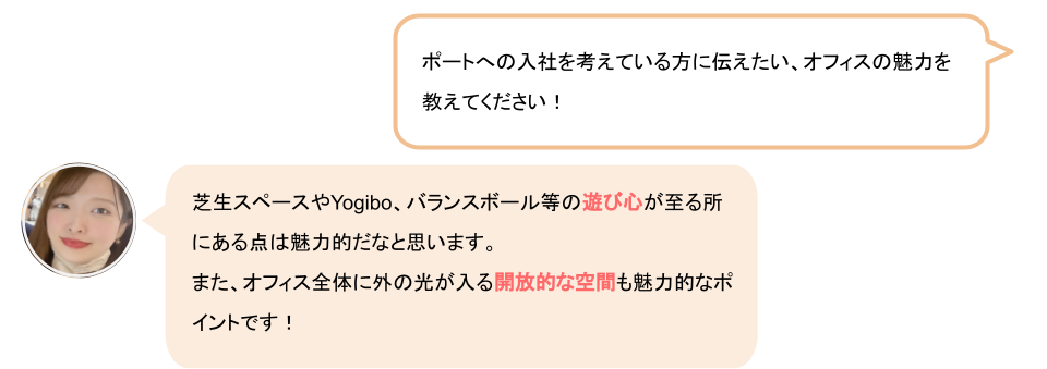 これまでポートのオフィスの魅力について紹介してきましたが、実際にポートで働く社員は、この新しいオフィスに対してどのように感じているのか、また、どのように仕事をしているのか、インタビューしてみました!