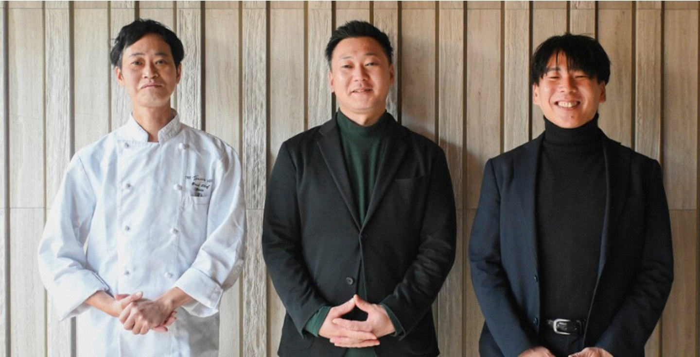 ▪大谷 洋祐(写真中央)…2014年にPDP入社。専門学校を卒業後、地元長野県のホテルに就職。その後上京しフレンチに携わる。ホテル西洋銀座で5年勤め、ベルギー料理店を経てPDPへ。FBS(フード・ビバレッジ・サービス)企画室所属。