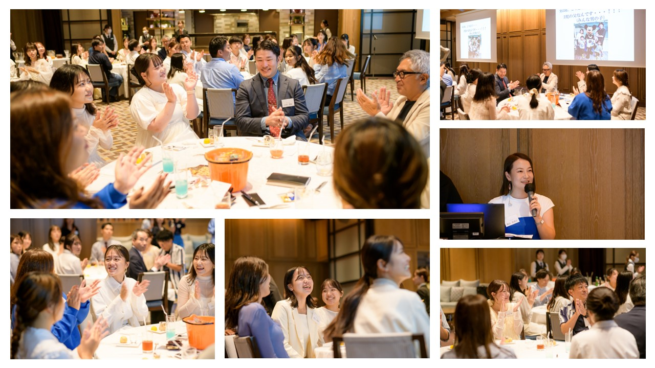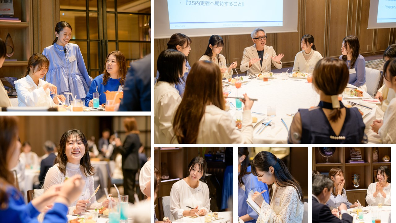 午前中に執り行われた内定式から午後の懇親会までの様子を、当日のエンドロール映像として上映いたしました。緊張の面持ちで会場に到着した姿から、内定者同士で談笑する姿、キリッと緊張感漂う内定式。そして懇親会、と一日を通して表情豊かな内定者の姿がおさめられており、とても有意義な一日だったことが伝わる素敵な映像でした。
