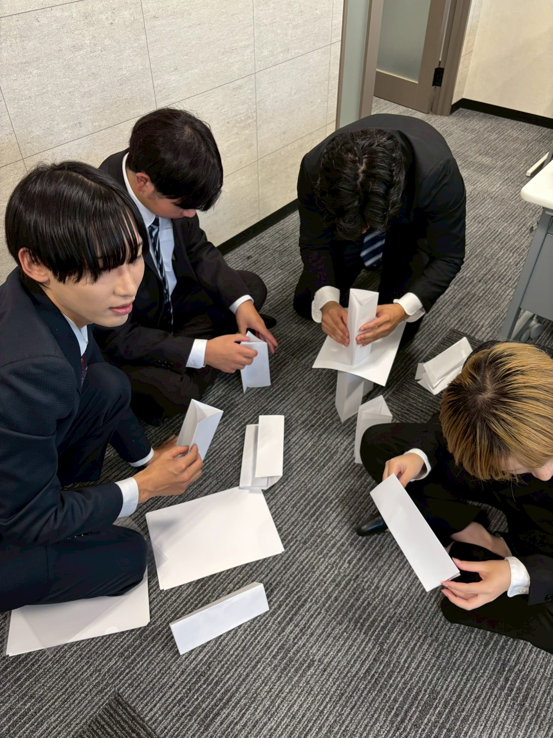 の合図と共に、みなさん一斉に紙を組み立て始めます✄📋️