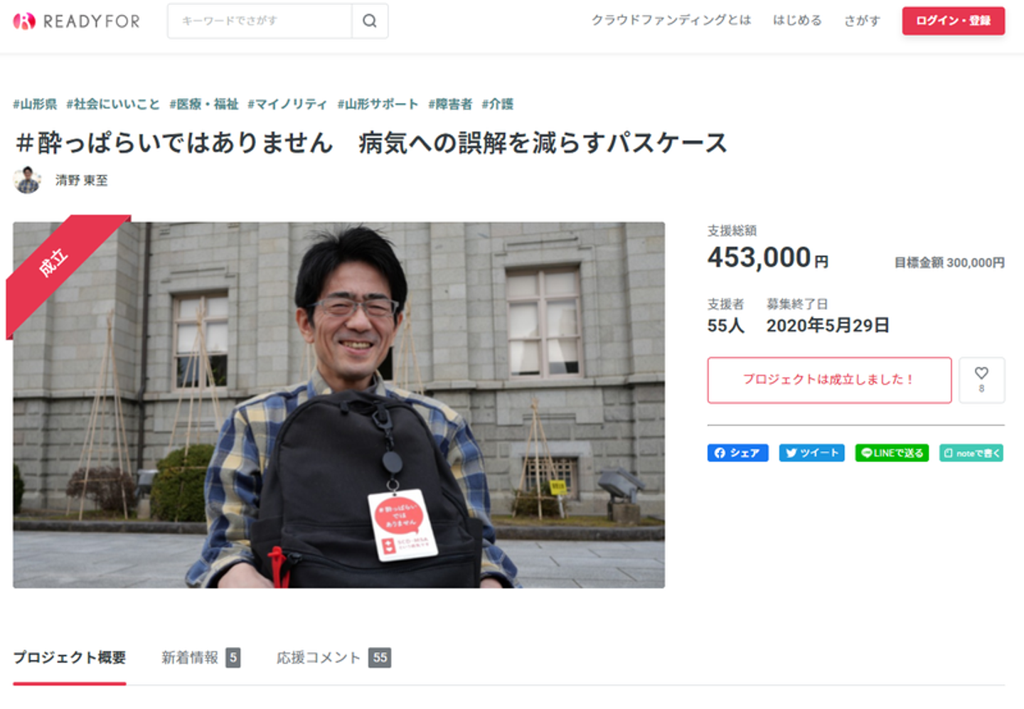 (クラウドファンディングでは目標を大きく達成。清野さんをきっかけに支援の輪が広がりました。)